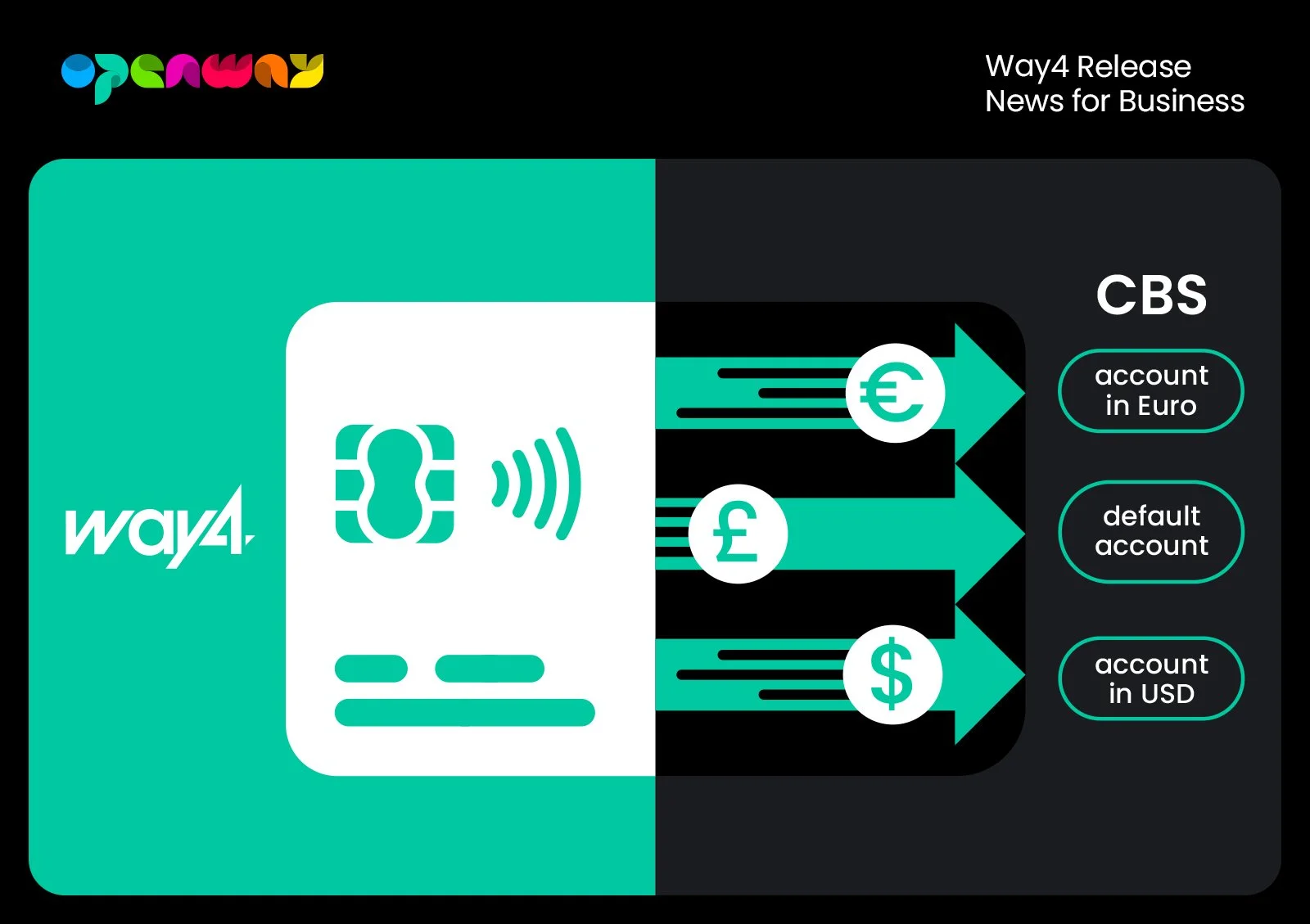 This product is available for banks, fintechs, and processors running the Way4 digital payments software platform. The card can be linked to an unlimited number of accounts in different currencies, and it can route transactions between them using configurable rules. For example, purchases in Japanese yen will be debited from a yen account. If there are insufficient funds in this account, the platform might be configured so that the transaction will draw funds from a euro account with automatic currency conversion at a favorable rate. The bank can even allow customers to configure some of those routing rules themselves, by embedding this option into the bank's mobile application via Rest API.